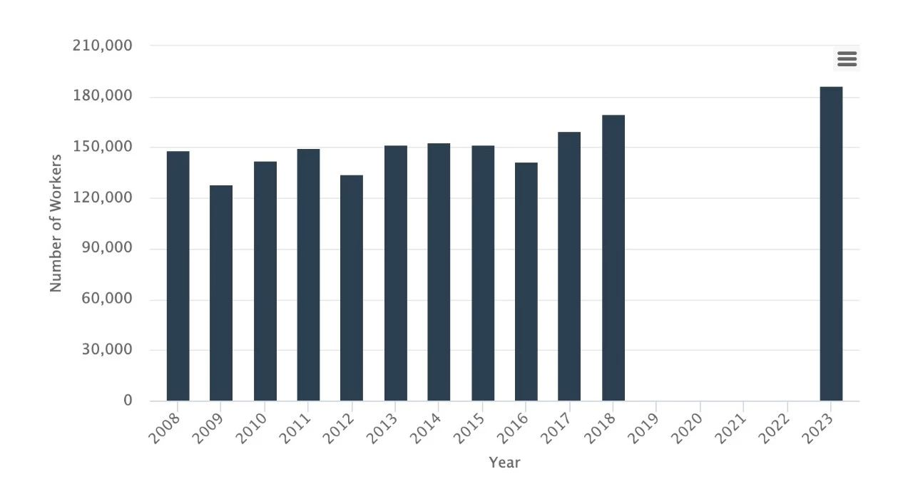 根据澳洲政府 Job Outlook 公布的数据,至 2023 年,小学教师的就业人数将上涨 9.6% ,至 18.58 万人,即就业岗位每年 将增加 18,600 个, 5 年增长 93,000 个职位,增长趋势强劲。