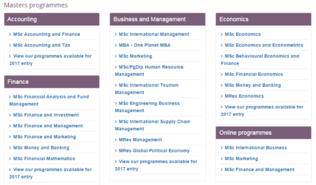 有的商科专业可以接收350+大学的学生,比如MSc International Tourism Management,Msc Marketing等。