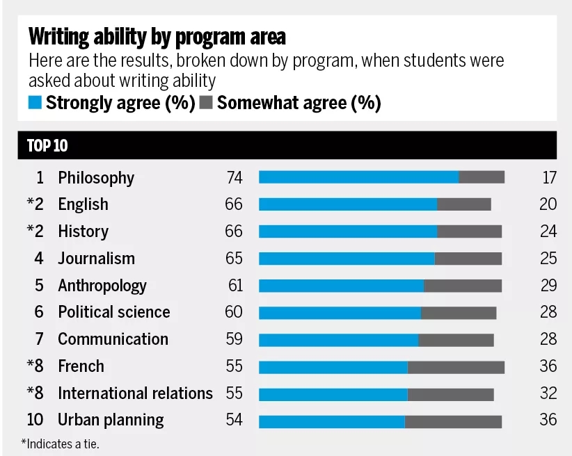 调查四:哪个专业写作能力最强?