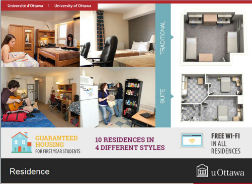 渥太华大学的每一位学生都能充分接触图书馆、政府机构、科研机构和前沿的科技创新项目。尽心称职的教师是渥太华大学宝贵的学术资源, 他们将帮助学生发挥出生命的潜力。交互的师生关系使学生学到并掌握所学的科目, 激发出批评的敏锐性,能面对未来挑战的兼有想象力与灵活性的独立思考能力。 大学有 3 个体育馆,带跳水设备的游泳池,舞蹈房,健美操房,壁球室, 滑冰场,攀岩壁等, 对全部学生开放,免费使用。各种学生服务组织和社团为不同民族、性别、信仰的学生提供各类服务,如组织欢迎新同学的活动,艺术展, 各类讲座等。校园中还有图书馆、餐厅、咖啡厅、酒吧、商店、游戏室、礼堂、书店等。