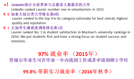 劳里埃大学创立于 1911年,是一所百年名校,学校名字以第七任加拿大总理Sir. Wilfri Laurier阁下命名。是加拿大享誉盛名的大学,大学有一万五千多名学生分布在滑铁卢(Waterloo)校区和班福(Brantfor)校区,超过7万校友遍布全世界。主校区位于加拿大科技三角区滑铁卢市,2007年滑铁卢市被公认为是世界上最具智慧的城市。