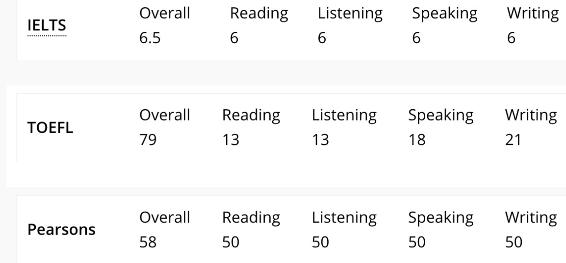 语言要求:IELTS 6.5 overall score, 单项 6.0