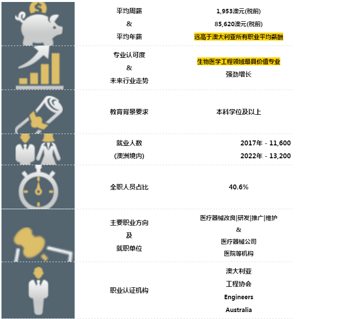 生物医学工程师 在澳大利亚乃至全球都属于 高端技术类紧缺职业, 薪资水平高,就业前景非常不错 。