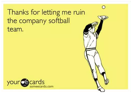 就像上面第二条提到的,所有的实习生都会在正常上班以外的时间参加一些志愿者课外活动之类的。极有可能就这样迎来了你的第一次“运动实践日“,而你对这个运动一无所知,也有没什么技巧可言……天!你们队里的人都和你爸妈一样大岁数!就这样,在太阳的长时间炙烤下,有一搭没一搭地尴尬对着话。。。。