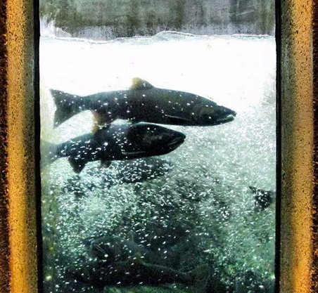 具体位置是在Capilano Suspension Brige入口的路继续向上开,就可以看到一个很大的information centre ,这里是三文鱼人工养殖和孵化场地,从那里不仅有玻璃窗口可以近距离的观看三文鱼产卵,还可以了解相关的知识。