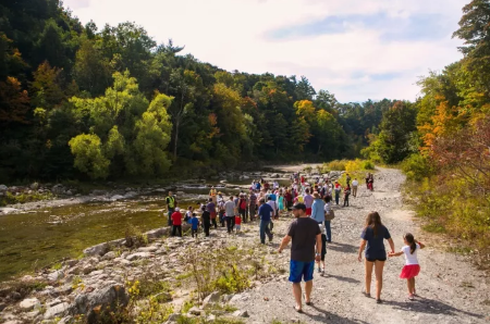 三文鱼会沿着 Ganaraska River 往上游,大家可以选择沿河步行观赏,也可以选择去 Corbett’s Dam 处观赏,不过后者人较多,因为可以看到三文鱼奋力跳跃通过水坝的壮举。