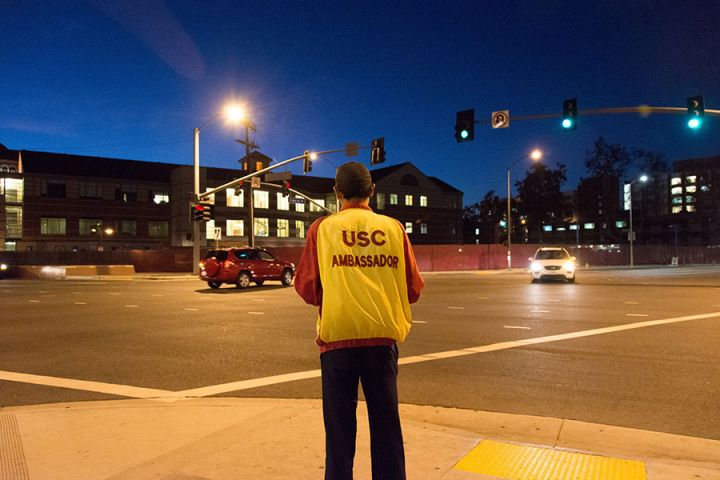 说到学到深夜,睡在图书馆,联想到南加大所在的区黑人众多,你是不是有一点担心安全呢,事实上即便如此也不用太担心,因为USC在安全上也是下了大功夫的,在9点之后禁止校外人员进入校园,并且如果你住在校外,可以呼叫cruise接送你回家,再退一步如果你等不及cruise,学校还设置了校外3英里内各街口的安保人员站岗。
