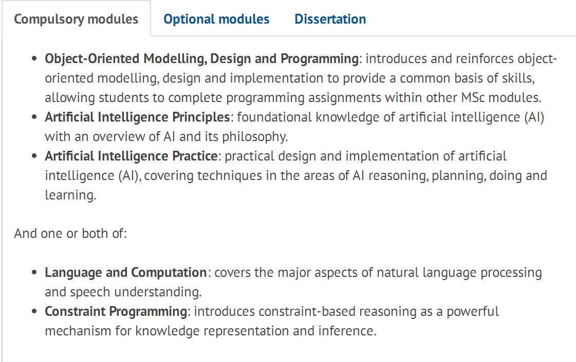 巴斯大学计算机科学学院同样设置有比较全的计算机类专业,如数据科学与统计( Data Science an Statistics MSc ),人机交互( Human Computer Interaction MSc ),机器人与自主系统( Robotics an Autonomous Systems MSc )
