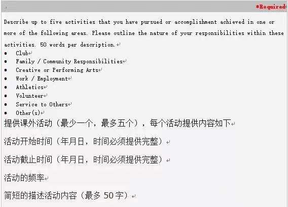 我们认为,仅靠课堂成绩并不能展现学生全部的潜力。因此我们对申请者课堂外(活动)表现出浓厚的兴趣,因为其间申请人表现出领导力、批判性思维、团队协作能力、社会责任感这四方面,有助于大学进一步了解学生的闪光点,进而增加录取概率。