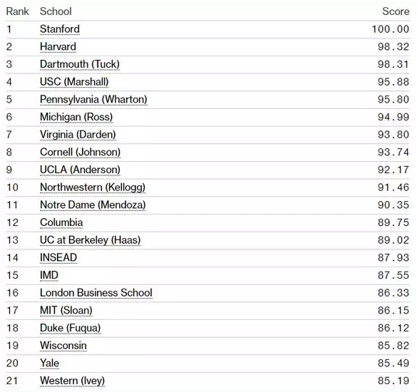 那么你知道加拿大哪个商学院校友网牛,就业率高,毕业生极受500强企业青睐吗?来和宋老师看个排行榜数据吧!以下是2019年美国知名商业杂志《彭博商业周刊》统计的,以就业为维度展示的排行榜。