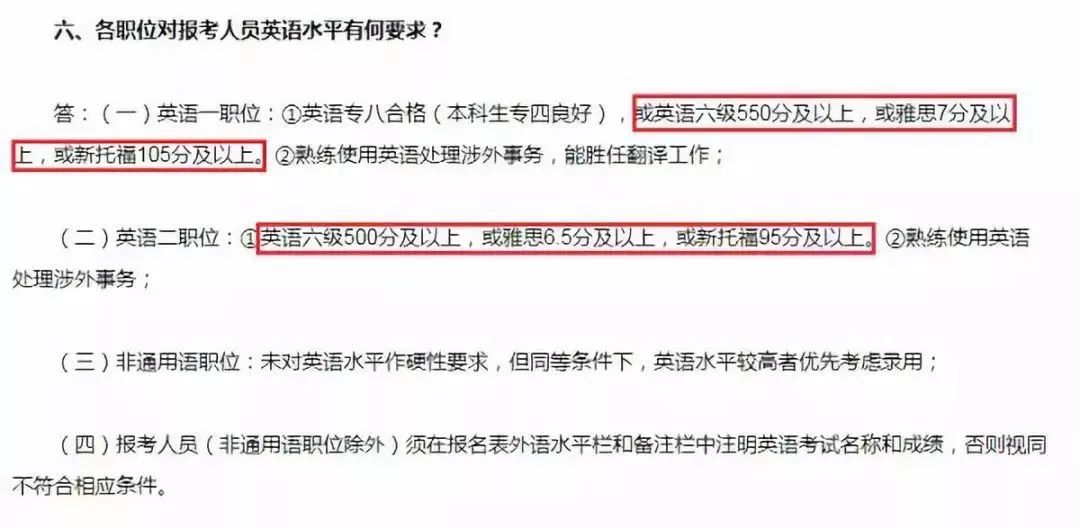 2019年,国考职位列表要求承认雅思或托福成绩的职位已经达到430多个,并且随着全球化的需要,逐年呈扩大趋势。部分职位要求如下