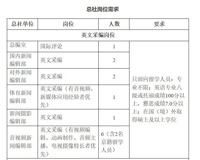 而作为国家党媒,稳坐媒体行业头椅的新华社在2019年最新面向社会招聘工作人员(含留学人员)的公告中,对于英语成绩也做出了明确的要求。