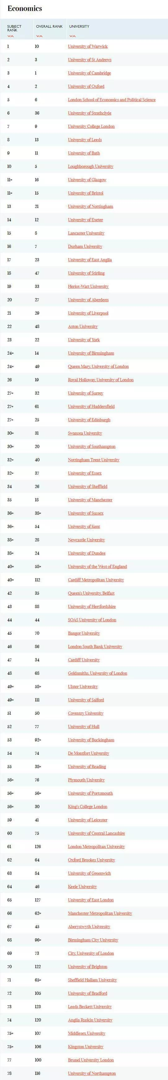 为了帮大家解除疑惑,前几天陆续给大家列了会计金融、传媒、教育等专业的 TIMES 大学排名以供大家参考,今天就经济学 TIMES 大学排名给大家介绍下。
