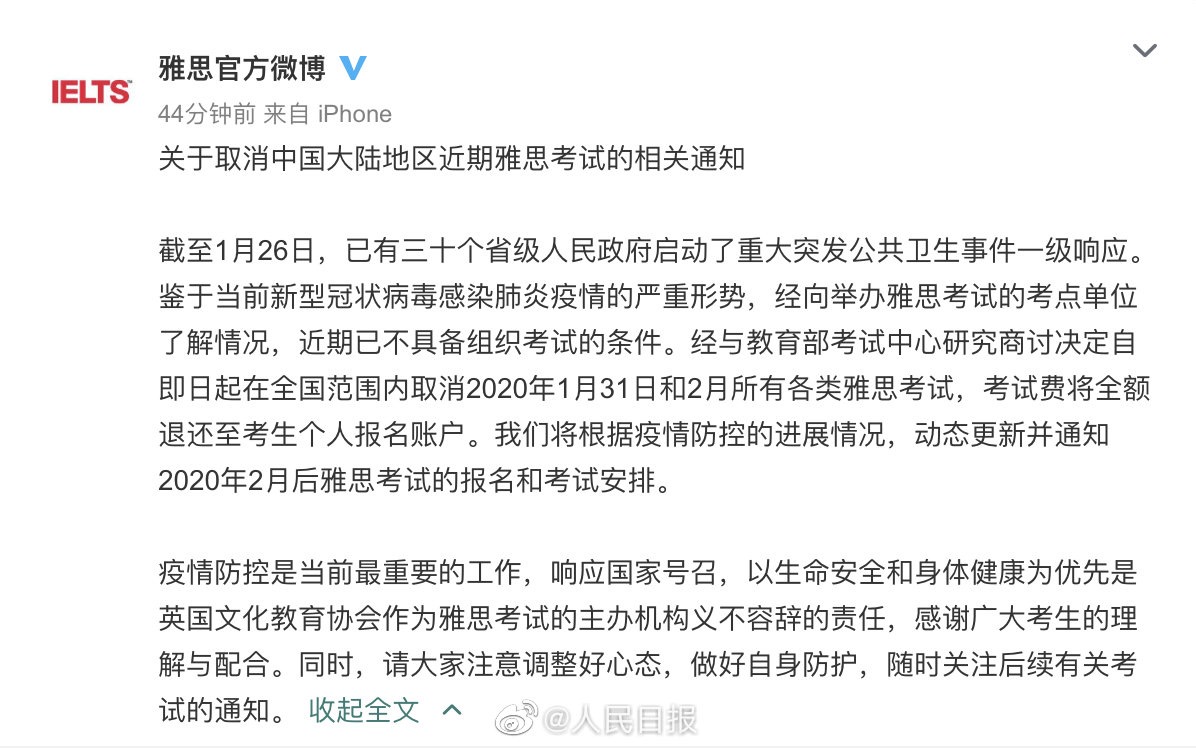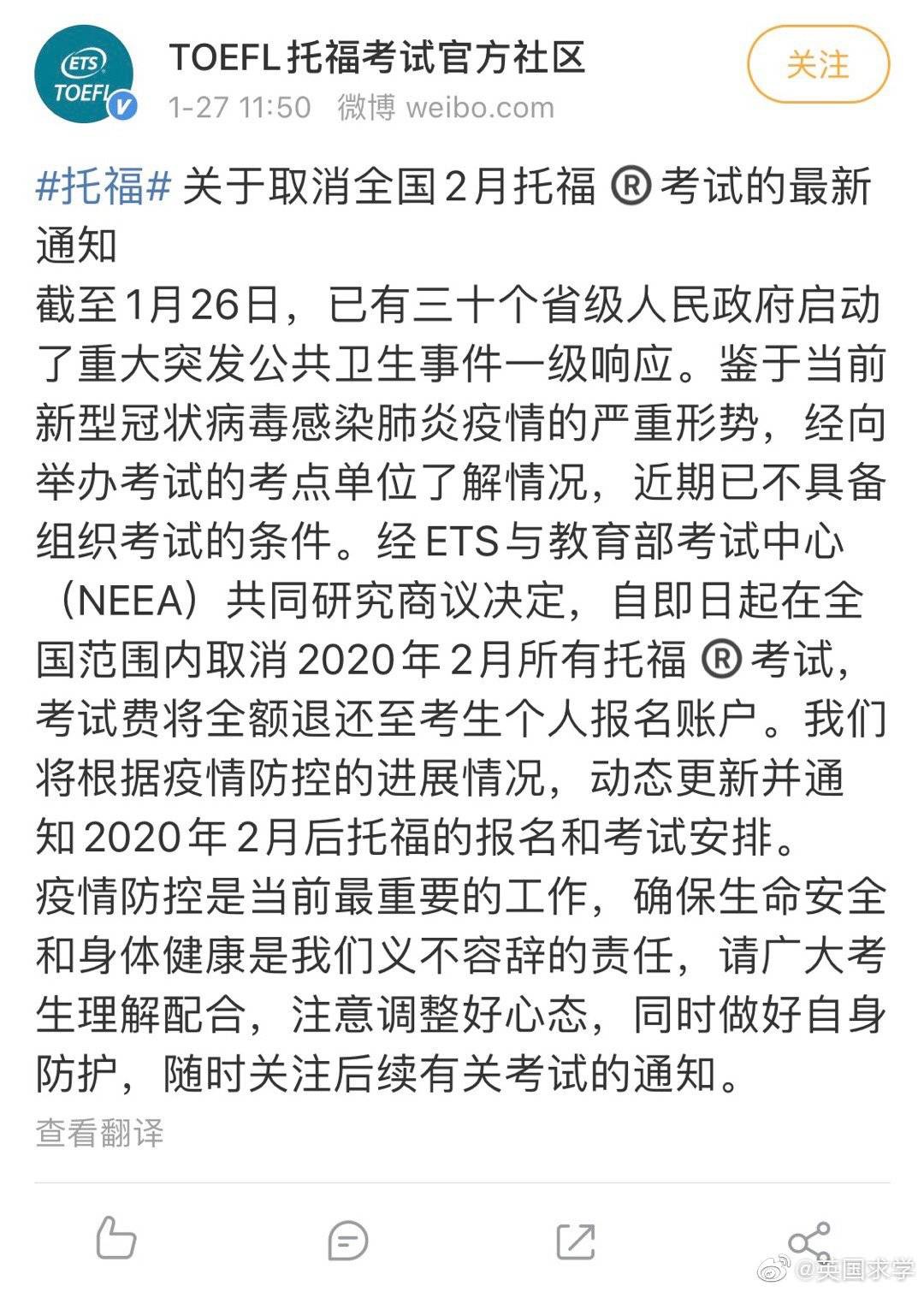 近期不具备组织考试条件,1月31日和2月所有各类雅思考试、所有托福考试取消。考试费全额退还至考生个人报名账户。1月31日起可以登录个人账户进行退款申请。目前三月初的考试是否正常进行还需要等待进一步通知,但鉴于语言班的最后期限越来越近,建议正在申请的同学先报上,如果后期取消应该也是可以全额退款的!
