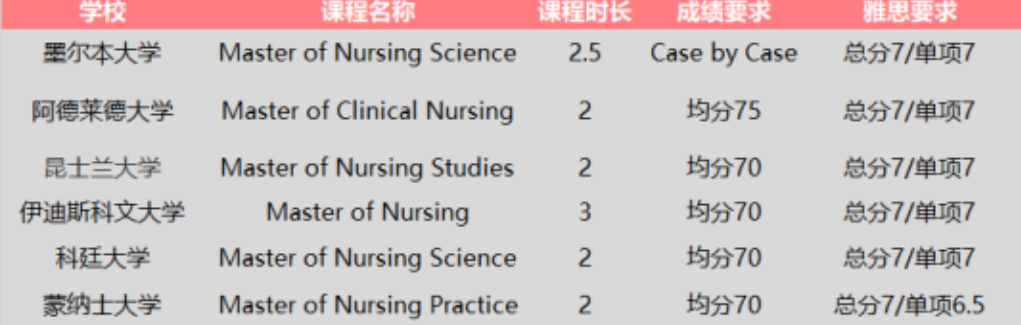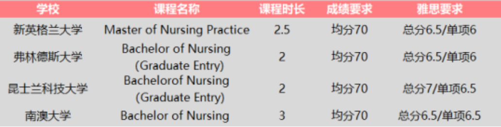 澳洲悉尼大学海外申请必须要有护理背景。而英格兰大学,雅思只需要总分6.5,单项6分就可以入读。
