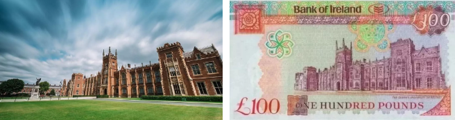 英国女王大学是典型的英伦校园风景,堪称贝尔法斯特城的颜值担当,去年还被评为全英十大最美高校( 2018 泰晤士报高等大学指南)。独特的红砖历史建筑承载了十九世纪著名建筑师的心血,不论是被爱尔兰银行发行的百元英镑上的主楼 Lanyon Builing ,还是被诗人菲拉普·拉金曾比作“完美的小天堂”的研究生院楼 Lynn buiing ,直至今日,她们内部装修还保留了当年的精致与古朴。