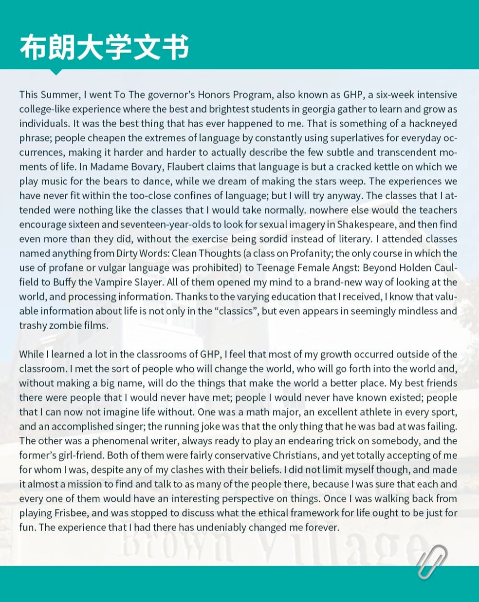 我们非常在意一个孩子的文书写完之后,是否能够让读者会心一笑,是否能够让读者停下来进行思考,如果能够达到这样的效果,我们就可以认为这个文书非常成功了。