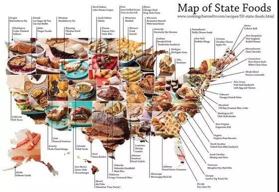 而且,每个州竟然有属于自己的“州菜”,可能是农产品,可能是饮料,也可能是某一种烹饪方法。