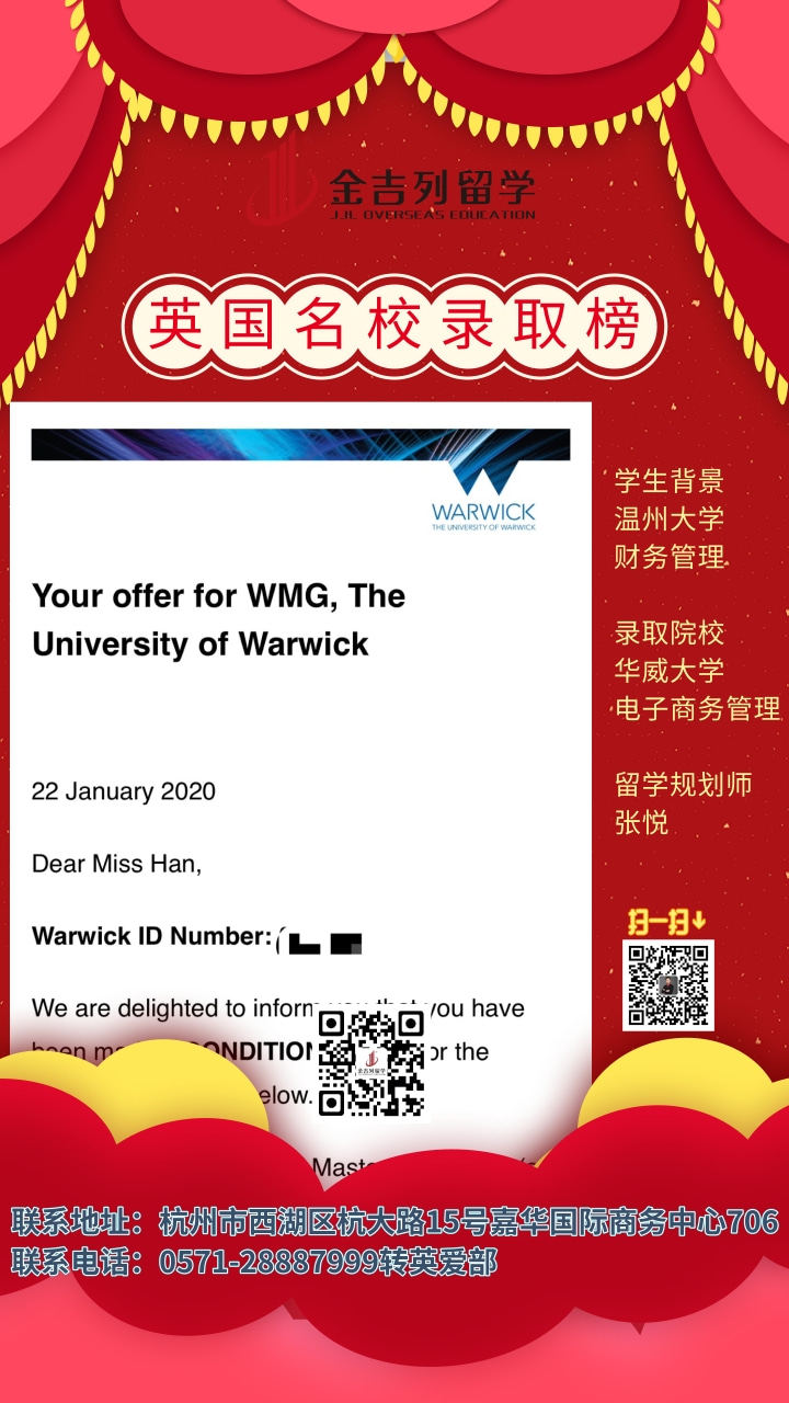 10月份递交,1.23号下的录取。华威电子商务管理专业录取。