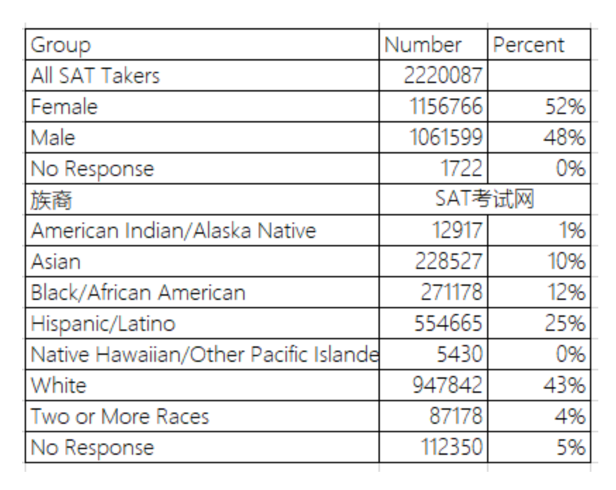 1、2019学年SAT考生超过222万,虽然是有史以来人数最多的一年,但仅比2018年增长了4%,而2018年却比2017年增长了25%,达到2136539人,增幅明显放缓。