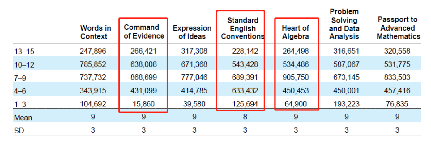 了解了整体分数的概况,你可能就知道SAT1500+虽然频频刷屏,但在数量上可能并不多,而是被机构渲染的多了,实际上大多数人都不到1500。 但如果要冲刺TOP30名校的话,1500+还是有必要拿到的。