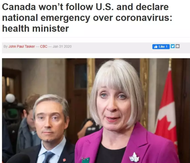 加拿大卫生部长Patty Haju明确表示另外,Patty Haju再次重申,加拿大境内大量感染并传播新冠状病毒的概率很小,没有证据表明无症状的人会传播这一病毒,公众不需要过度担心。