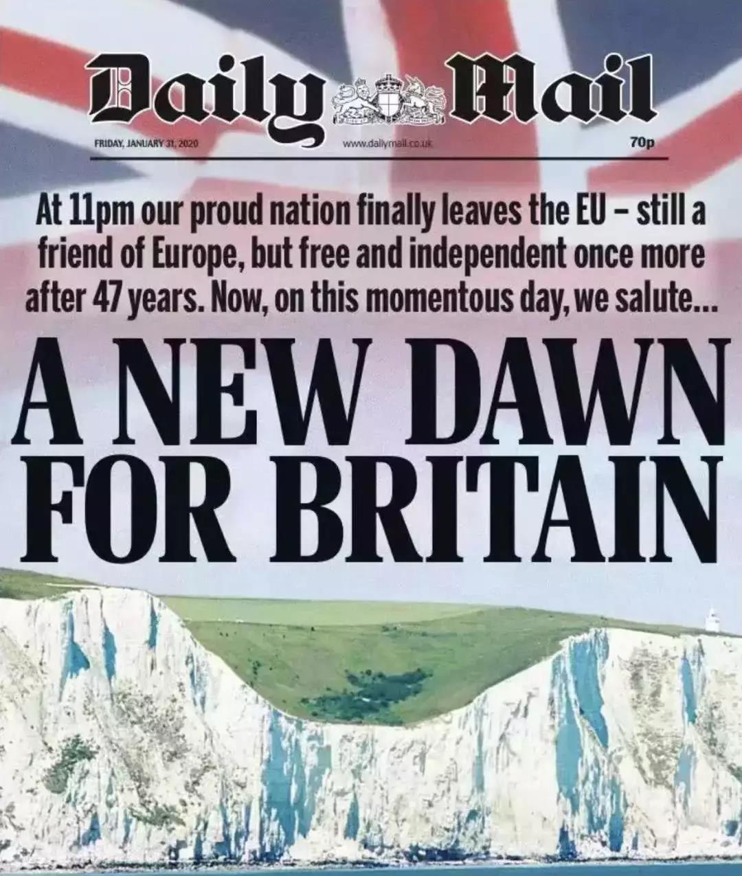 《每日邮报》则在头版写道: 这是属于英国的崭新黎明。