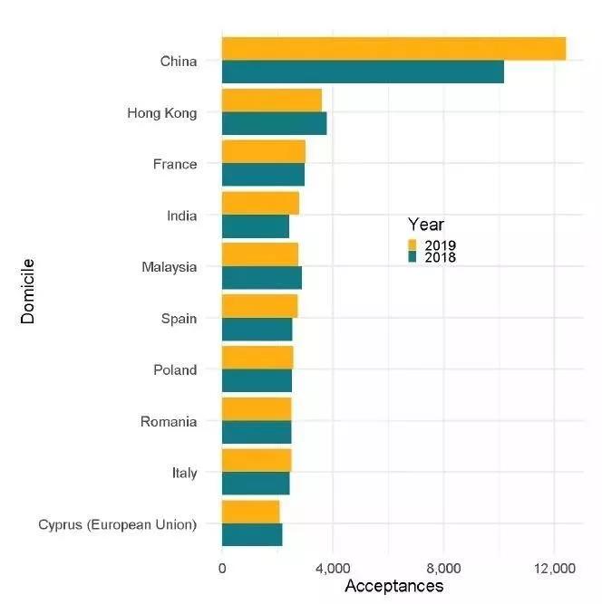 录取率最高的10个国家/地区