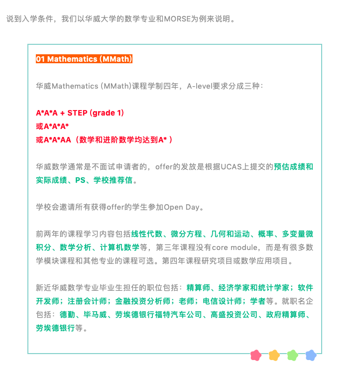 华威数学辣么牛,你是不是不止一点点心动?热门专业肯定要求不低,而且竞争压力大,赶快来一起让自己的A-level成绩高一点再高一点,顺利拿到华威数学offer吧!