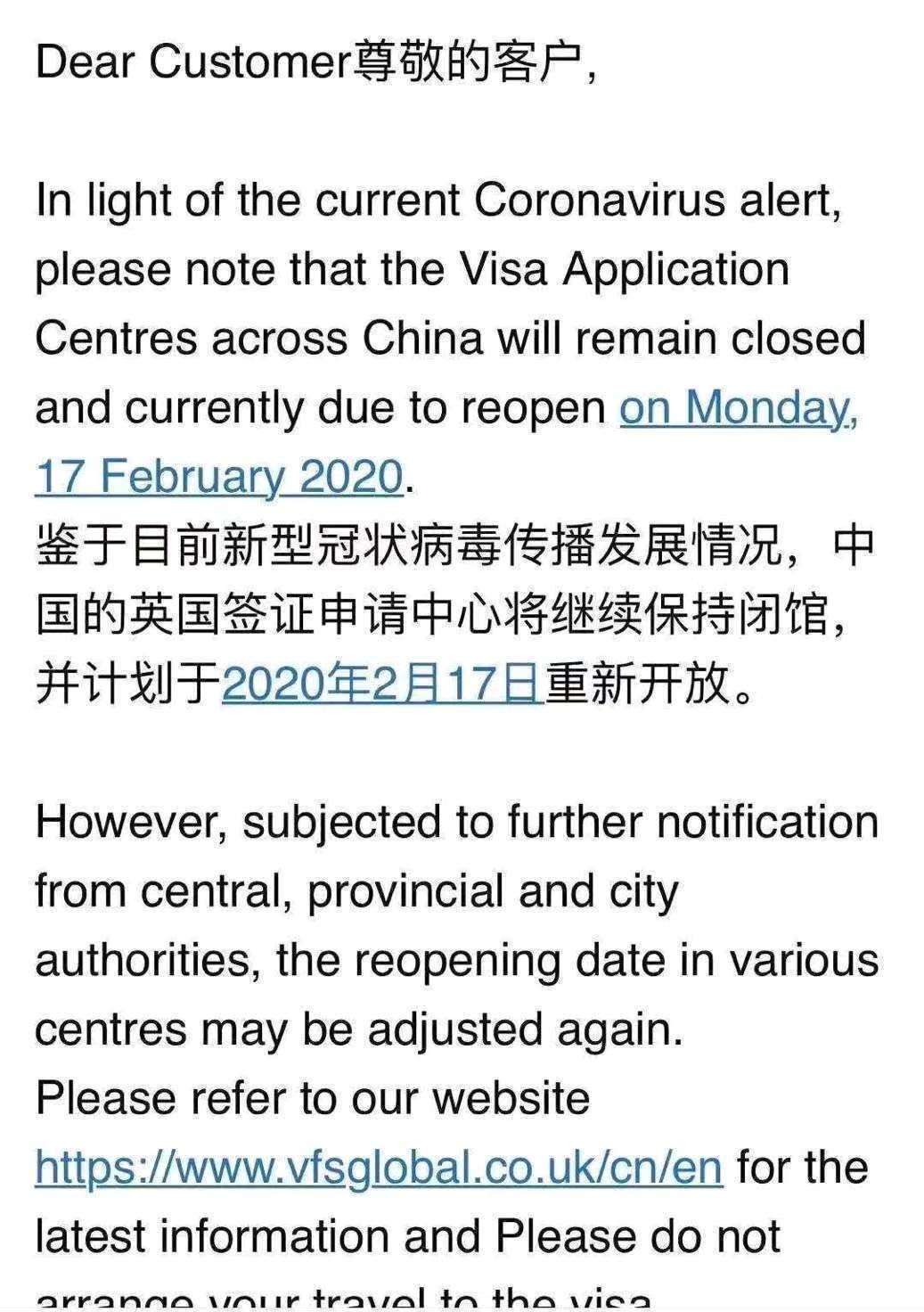 上午我们接到英国签证中心邮件,通知中国的英国签证中心将继续保持闭关,并计划于 2020年 2月 17日重新开放 。目前签证中心官网信息仍未更新。