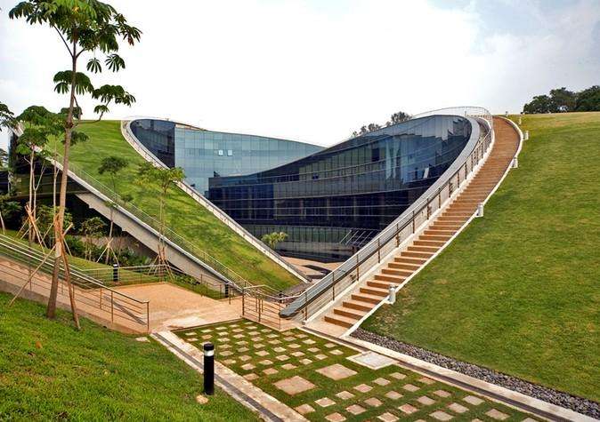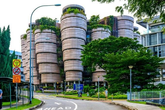 南洋理工大学位于新加坡的西部,学校环境特别棒,建筑风格采用现代科技风格,学校占地面积不是很大,毕竟新加坡就很小。但是学校的设计充分利用了自身的技术在有限的空间制造出更多的环境,如果是走路的话能在里面走个小半天。