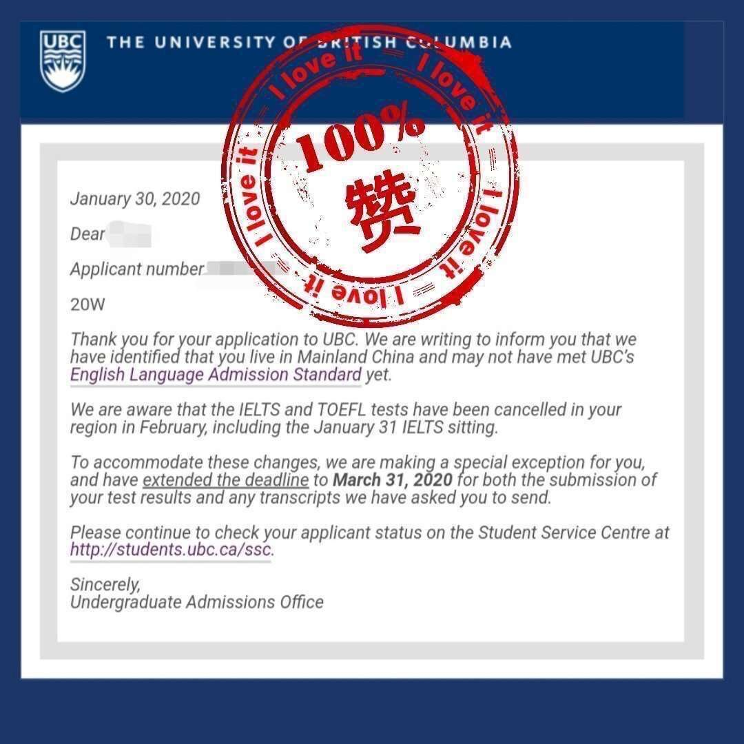 UBC大学延长了语言和成绩单的截止时间,最终截止时间改为3月31日前递交