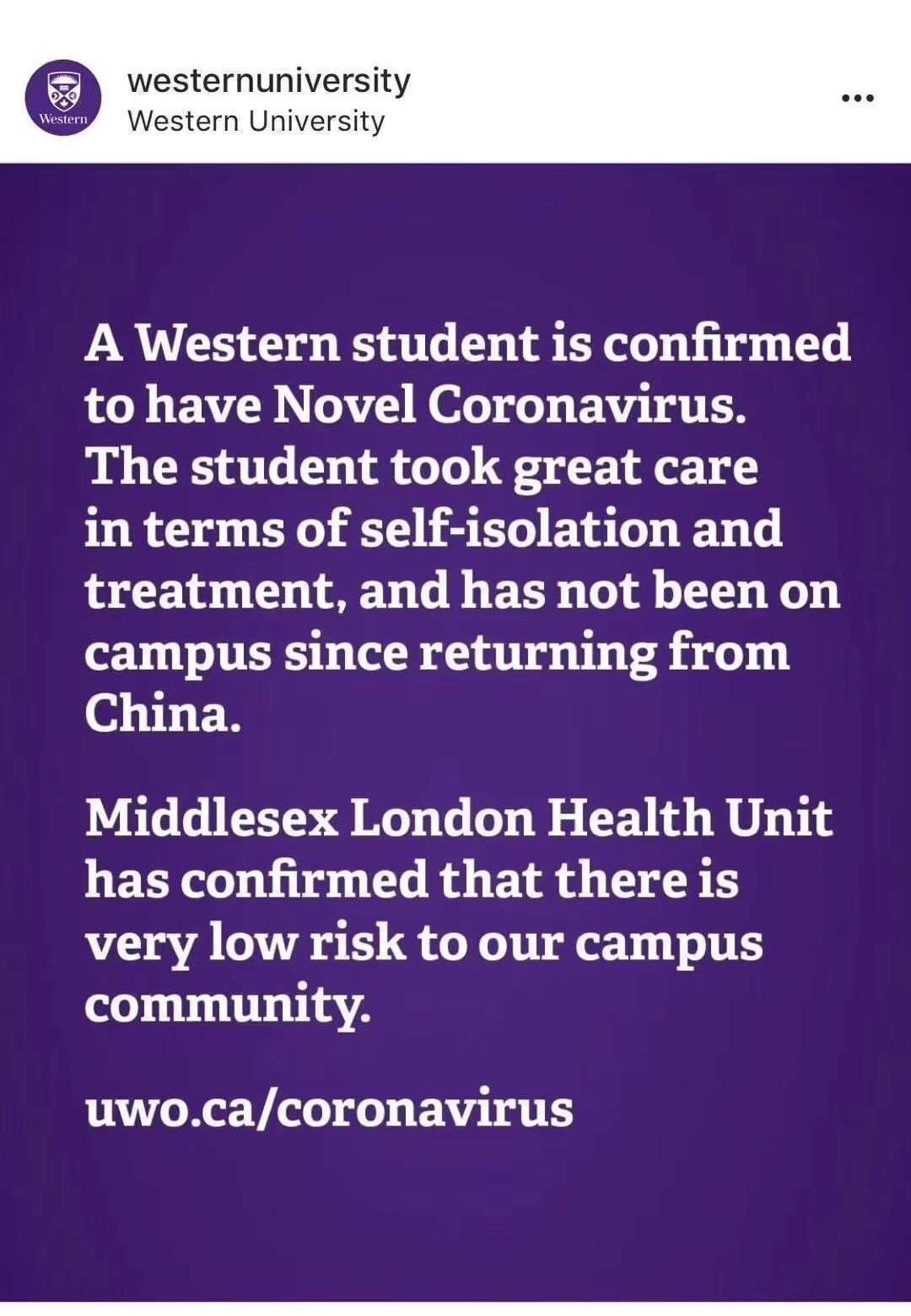 西安大略大学确诊一例来自武汉留学生冠状病毒感染者,学校官方发文并表示“我们此刻最应该做的是保持,心怀共情”,让我们看到的是尊重和鼓励。