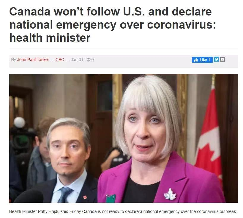 加拿大总理特鲁多说拒绝跟风表示:“在加拿大,没有任何地方可以容忍恐惧和歧视(华人)”并亲自出席多伦多Woosie Square的华人新春百年活动,为华人打气,为武汉加油。