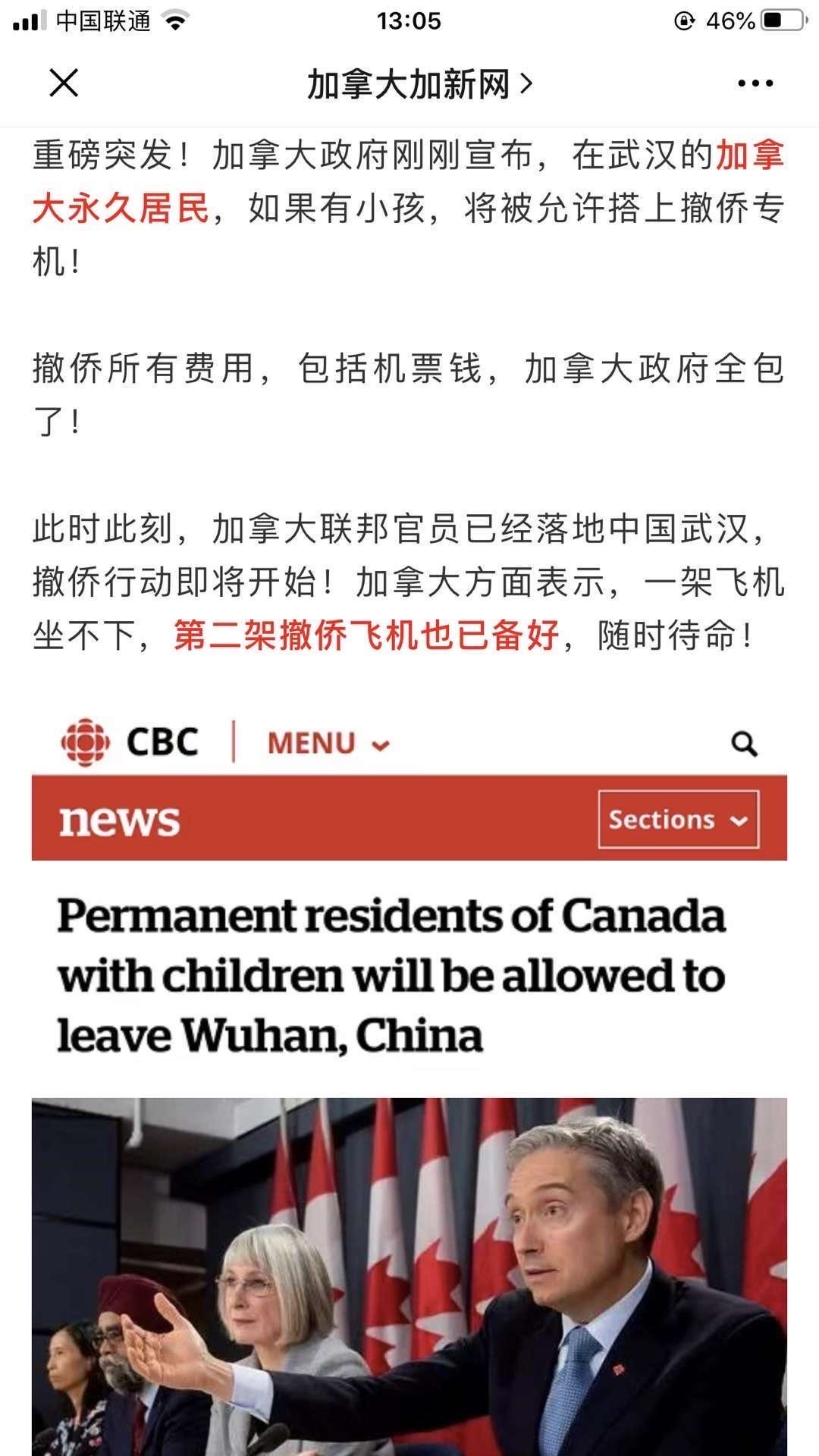 加拿大政府宣布,不仅持加拿大护照的加籍公民可以打上撤侨飞机,而且允许有子女在加国的简答永久居民(持枫叶卡)一起撤离,所有费用由政府负责。