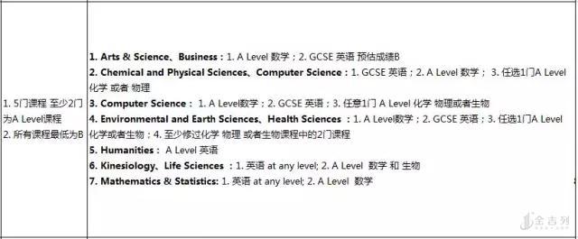 说了这么多,你对A-Level有个大概的了解了吗?小编给你们找来了这份入学条件给大家做参考,准备要留学的同学可要仔细看好喽。 (以下表格中为一般要求+具体要求)