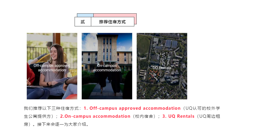 Guarantee Accommoation 我们为在St Lucia校区和Herston校区学习的国际新生提供Guarantee Accommoation(保证住宿)。 获取Guarantee Accommoation必须满足以下条件: 国际学生 ; 已经接受UQ offer (包括ICTE-UQ语言课程和IES预科offer); 单独居住 (夫妻或家庭同住不提供);入住 时必须年满18周岁 。