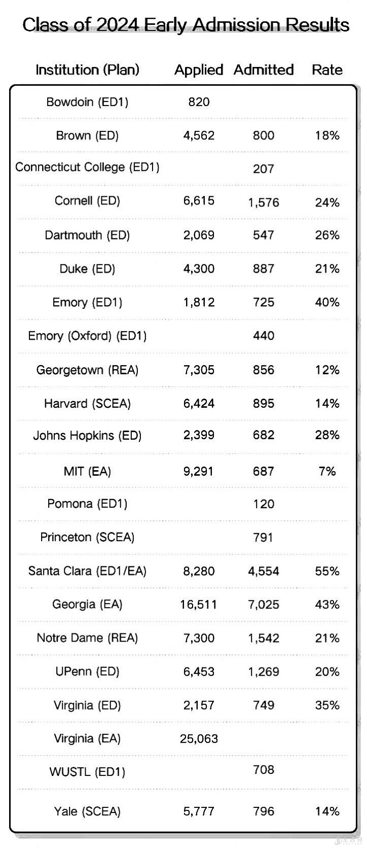 本年Brown ED请求人数较上一年添加332人,到达破纪录的4562人。选取人数初次上800,但选取率却从上一年的18.2%降低到本年的17.5%。