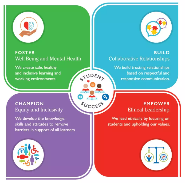 近几年,不光只在留学圈有了这样的讨论,加拿大得公立教育系统开始着重实践“学生成功”(Stuent Success)的教育理念。2018-19学年度,约克公立教育局的“未来数年战略计划”(Multi-Year Strategic Plan)在原来的基础上进行了修整,目标是通过以下四个大方面来帮助学生们在YRDSB的成功: