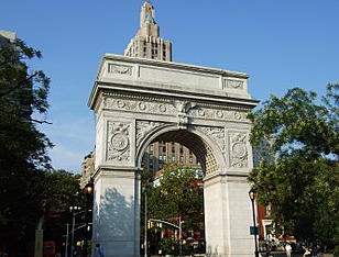 带有广场拱门的华盛顿广场公园(Washington Square Park)被纽约大学(NYU)的建筑物所包围,在大学的校园生活中起着不可或缺的作用。