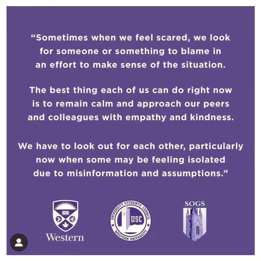 从加拿大院校的反应这里,我看到了顶级学府的格局和胸怀。看到了真正的尊重!当加拿大第3例确诊在西安大略大学的一位本科生身上,西大第一时间编辑并发送了这则信息,下面简短翻译一部分内容给大家: