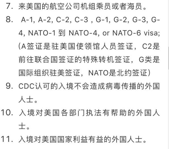 Q:该禁令生效后,持有美国签证的人士该如何前往美国? A:只要离开中国大陆14天,依然可以凭借有效的美国签证赴美国。你可以呆在香港,澳门,加拿大,韩国,日本等等任何允许你待满14天的地方。之后凭借登机牌和中国大陆的出境记录就可以前往美国。注意千万不要对美国边检CBP撒谎,这点上撒谎惩罚很可能是终身禁止进入美国。