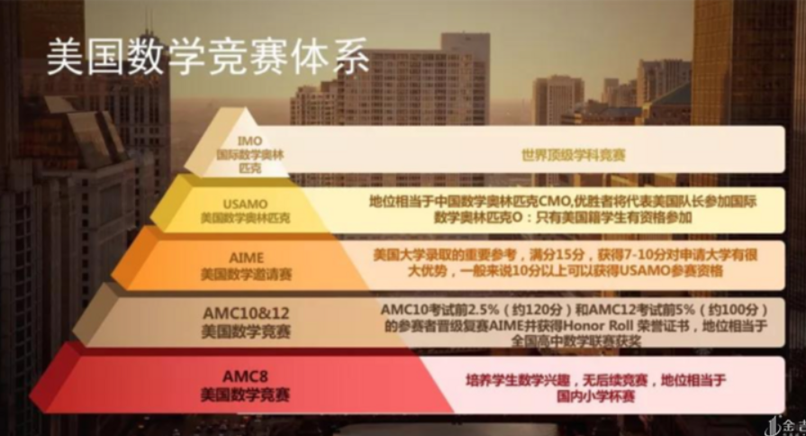 因为AMC练起来比较划算,知名度高,含金量好,造成了一个在准备去美国读书的孩子中间的现状:几乎都在准备AMC,官方点说对于准备去美国读书的孩子,AMC证书已经算是必备项了。
