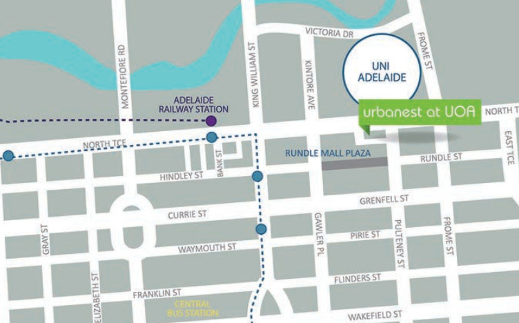 位于阿德莱德大学 North Terrace 校区正对面的 Urbanest , 从智能设计的社交区域到充满动感的健身房 以及完善的支持服务为同学们提供全面贴心的住宿服务。 Urbanest 地理位置优越, 距离 Runle Mall 购物中心仅数分钟的路程且紧邻巴士站,距离阿德莱德火车站只有10分钟的路程,是学生生活和学习的理想场所。