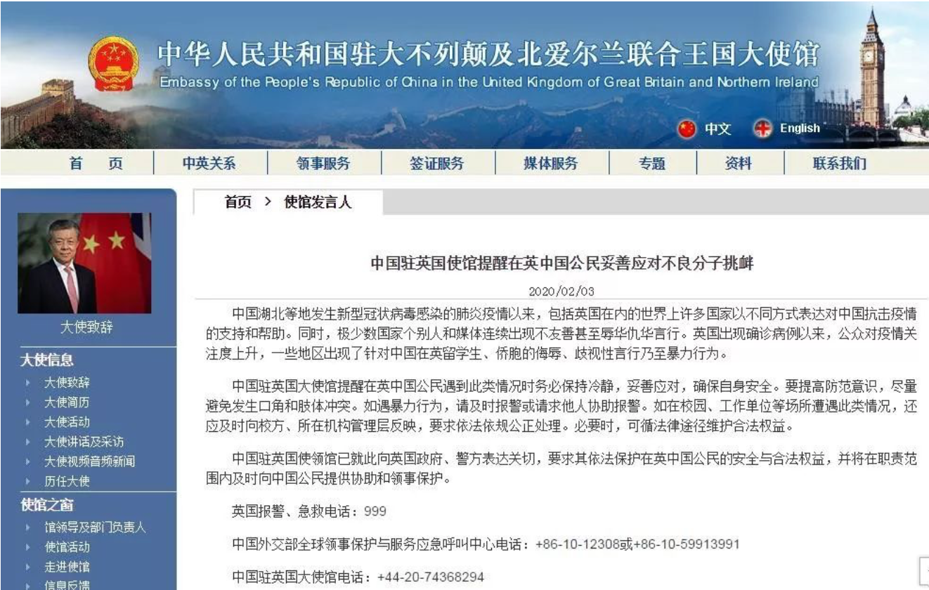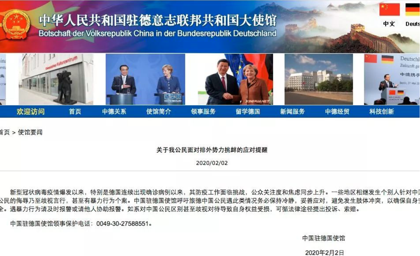 这次肺炎疫情,一些地区连续出现反华偏见和种族歧视事件。多个中国驻外大使馆发出安全提醒,提醒中国公民确保自身安全,妥善应对不良分子挑衅。