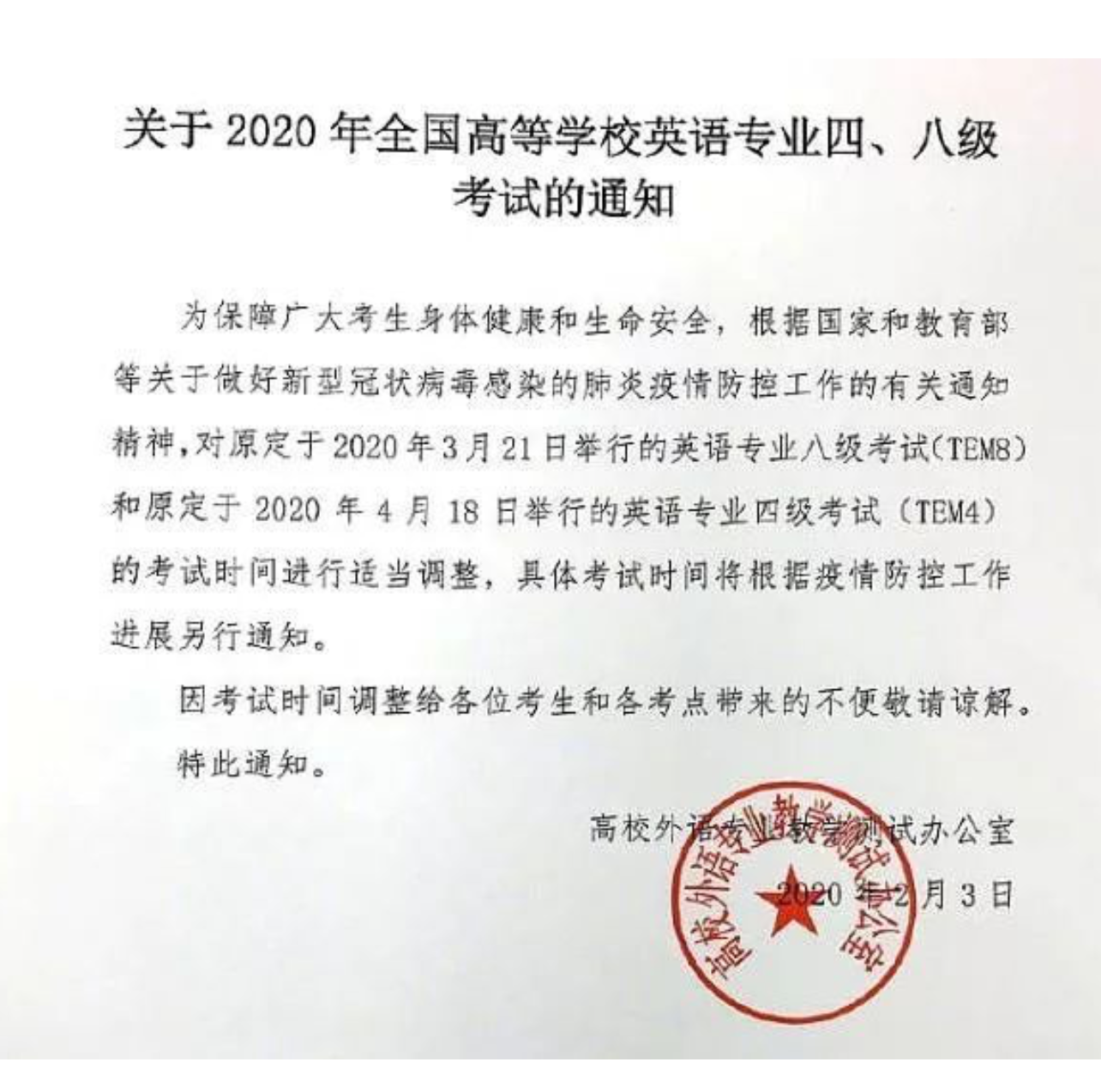 国内 专四、专八考试已经确定延期 ,具体时间视疫情情况待定。