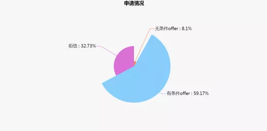 2019年,提交留学申请的学生中, 拿到offer的有67.27%,其中59.17%拿到了有条件offer,8.10%拿到了无条件offer, 恭喜他们。