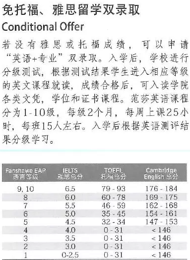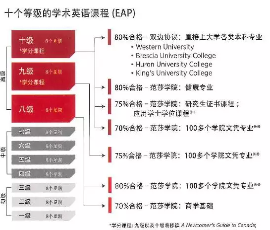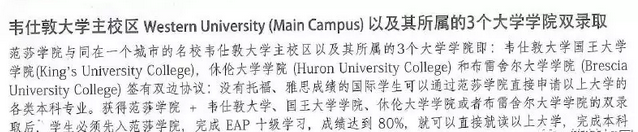 范莎学院开设的课程包括:研究生证书,本科学位,大专文凭共计115个专业,专业涵盖商科,旅游酒店,设计,健康,理工科,传媒,计算机以及运输等多个领域。 大学双录取 目前范莎对于中国学生最具吸引的是与同城的被誉为“加拿大哈佛”的韦仕敦大学(原西安大略大学)签署的双录取协议,如下: