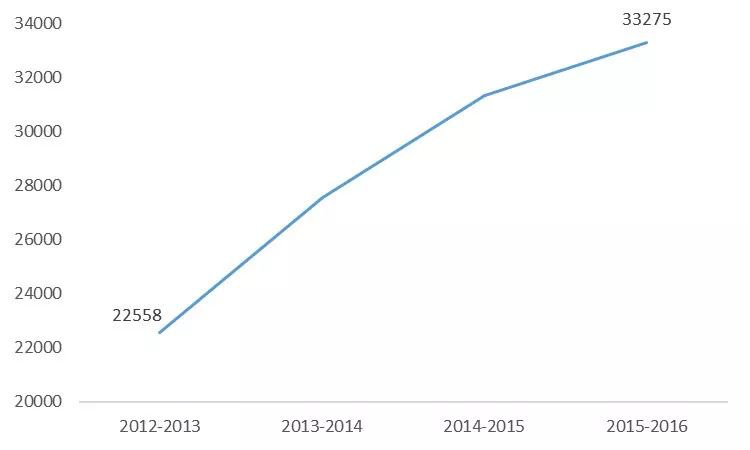 2016年在美国留学的中学生中,来自中国的学生达到33275人,占美国该学年国际中学生总量的41%,较2012-2013学年增长了48%,超过了学位学生和交换学生总数12%的增长速度。