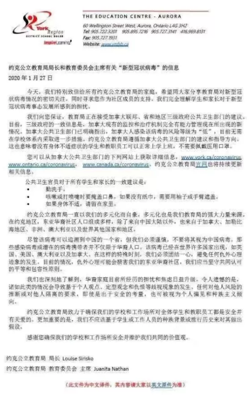多伦多现在有2例新冠状病毒确诊感染患者了,所以多大官方也发出了声明。